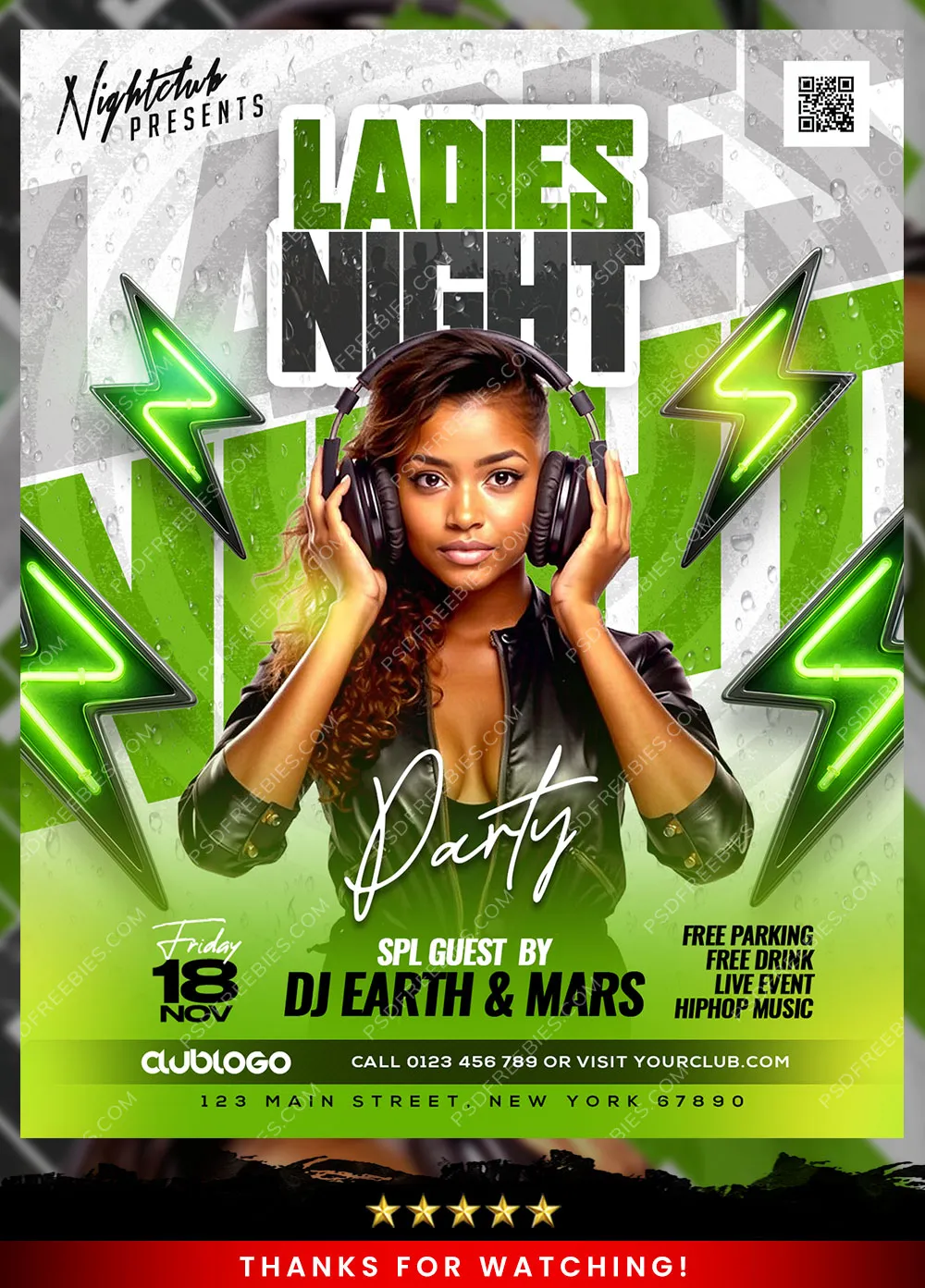 Introducing the our Ladies Night Club Party Flyer PSD. This psd template is designed to promote your upcoming special night party dedicated to girls and ladies party, music event, concert, festival, or a weekly event at a music club. It’s the perfect template to create excitement and attract a crowd to your event. This Flyer or poster can also be used for a new album promotion or other advertising purposes.